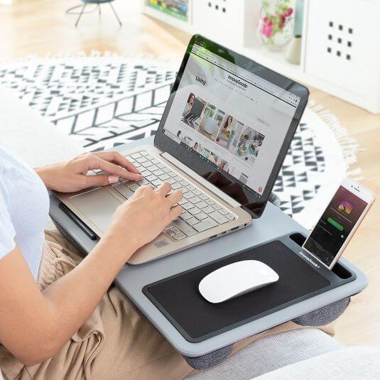 Un birou portabil de laptop cu o perna confortabila incorporata in baza de sprijin pentru o munca confortabila. Acest birou original are un design ergonomic, modern si elegant, in plus, este compact si usor, astfel incat poate fi transportat oriunde cu manerul sau de transport si depozitat cu usurinta. Datorita versatilitatii si adaptabilitatii sale, poate fi utilizat pentru diferite utilizari (lucrul cu computerul, scrierea, desenarea, citirea, mancatul etc.) in diferite spatii (pat, canapea, fotoliu etc.). A fost realizat cu materiale de calitate, deci este rezistent si durabil. Ajuta la mentinerea ordinii si la o mai buna utilizare a spatiului.