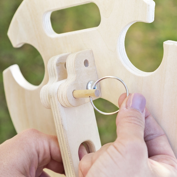 - Are trei gauri potrivite pentru 2 pahare si o sticla. De asemenea, suportul de vin poate sustine si farfurii de dimensiuni mai mici;